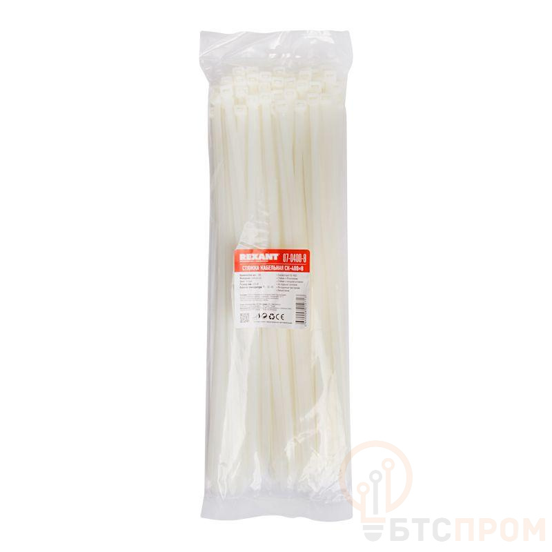 Нейлоновый хомут (кабельная стяжка) REXANT представляет собой белую гибкую полоску из полиамида с замковым механизмом одностороннего действия. Используется для крепления или соединения в жгут проводов, кабелей и любых разновидностей труб. Прочность, эластичность и простота монтажа позволяют использовать их на предприятиях и в быту. Нейлоновая стяжка REXANT отличается надежной фиксацией, прочностью и устойчивостью к внешним воздействиям. Изделие является экологически чистым продуктом, не содержит галогенов. Установка может быть выполнена вручную или с помощью специального пистолета. По окончании работ излишки длины обрезаются. Не рекомендуется перегибать изделие более чем на 90° при монтаже или хранении. В упаковке поставляются 100 стяжек размером 400x7,6 мм.