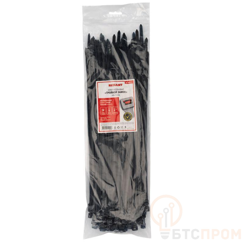 Нейлоновая хомут-стяжка Профессиональная с тройным замком – это высококачественное крепежное изделие, предназначенное для фиксации проводов, кабелей и труб в нужном положении, а также организации кабельных систем. Представляет собой черную нейлоновую полоску с высоким уровнем гибкости размером 400x7,6 мм. Стяжка изготовлена из нейлона-6,6, износостойкого и прочного материала. Данный вид хомутов на 30% крепче своих аналогов, так как оснащен двусторонним полотном с зубчиками и уникальным замком с тремя точками контакта. Изделия упакованы в герметичные пакеты многоразового использования с замком Zip-Lock. Этот тип упаковки обеспечивает удобное хранение и защиту от пыли, а также предотвращает потерю влаги. Стяжки упакованы в наборы по 100 штук. Установка хомутов может выполняться вручную или с помощью специального монтажного пистолета (арт. 12-4524, 12-4521 и 12-4541).