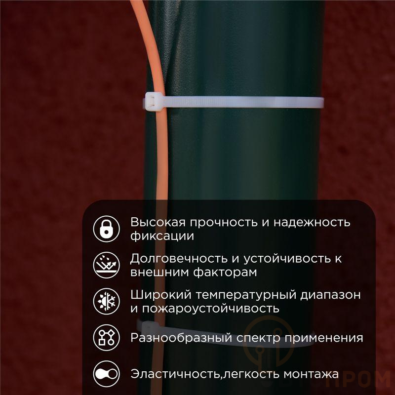 Нейлоновая хомут-стяжка Профессиональная с тройным замком – это высококачественное крепежное изделие, предназначенное для фиксации проводов, кабелей и труб в нужном положении, а также организации кабельных систем. Представляет собой белую нейлоновую полоску с высоким уровнем гибкости размером 500x7,6 мм. Стяжка изготовлена из нейлона-6,6, износостойкого и прочного материала. Данный вид хомутов на 30% крепче своих аналогов, так как оснащен двусторонним полотном с зубчиками и уникальным замком с тремя точками контакта. Изделия упакованы в герметичные пакеты многоразового использования с замком Zip-Lock. Этот тип упаковки обеспечивает удобное хранение и защиту от пыли, а также предотвращает потерю влаги. Стяжки упакованы в наборы по 100 штук. Установка хомутов может выполняться вручную или с помощью специального монтажного пистолета (арт. 12-4524, 12-4521 и 12-4541).