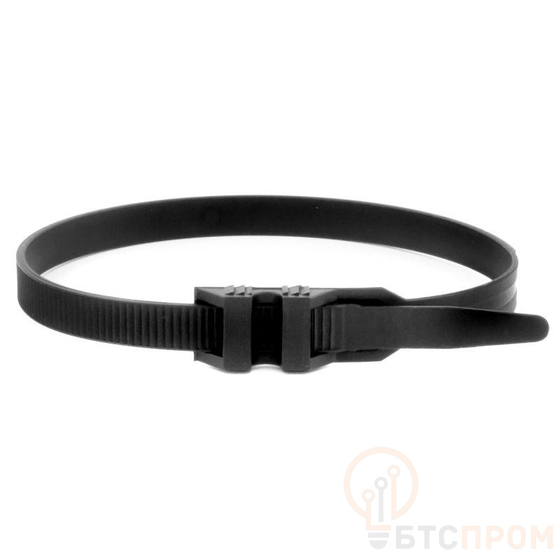 Хомуты с плоским замком предназначены для фиксации и крепления проводов. Плоский замок с системой внешних зубцов позволяет подвешивать кабельные линий, избегая повреждения изоляции. В составе хомутов не содержатся галогены. Размеры: ширина - 9 мм, длина - 185 мм. Цвет - черный.