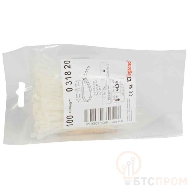 Хомут кабельный Colring 2.4х95 бесцвет. (уп.100шт) Leg 031820 фото в каталоге от BTSprom.by