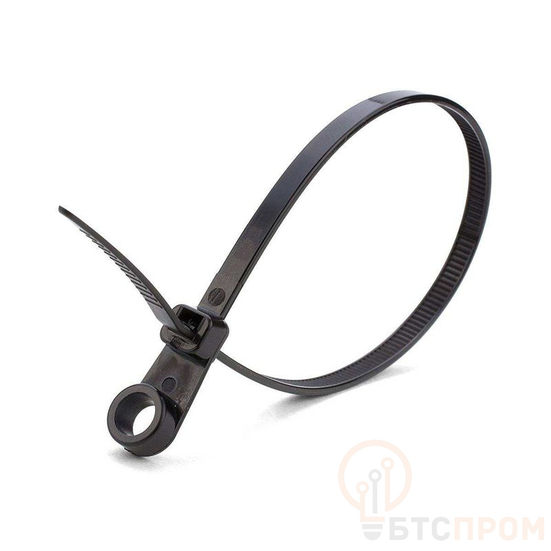 • Конец стяжки имеет конструктивное отверстие для крепежа хомута к рабочей поверхности при помощи саморезов