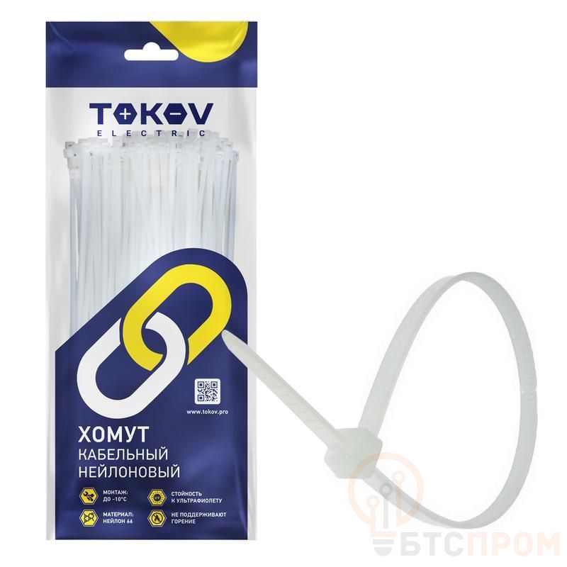 Хомут кабельный нейлоновый бел. 3.6х150 (уп.100шт) TOKOV ELECTRIC TKE-HNS-3.6-150-W/100 фото в каталоге от BTSprom.by