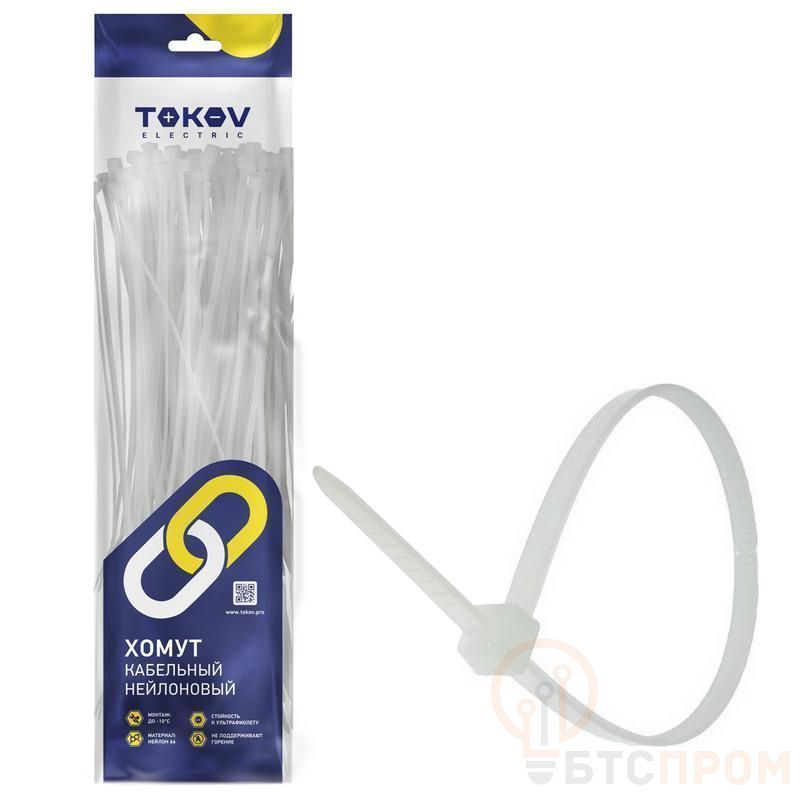 Хомут кабельный нейлоновый бел. 4.8х400 (уп.100шт) TOKOV ELECTRIC TKE-HNS-4.8-400-W/100 фото в каталоге от BTSprom.by