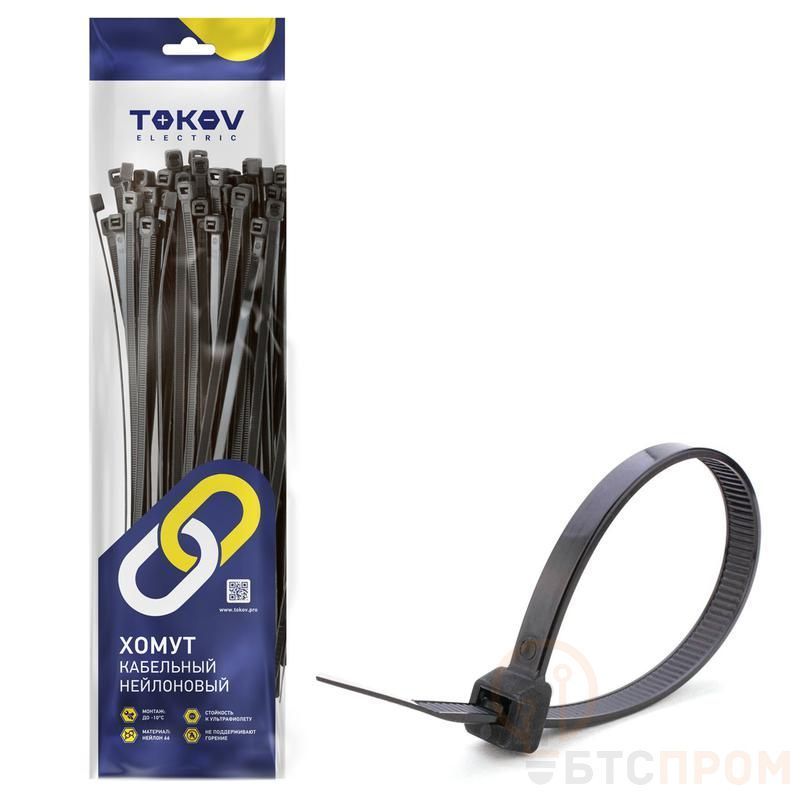 Хомут кабельный нейлоновый черн. 4.8х300 (уп.100шт) TOKOV ELECTRIC TKE-HNS-4.8-300-B/100 фото в каталоге от BTSprom.by