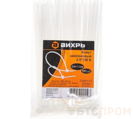 –Хомут нейлоновый 2.5х150 Б (уп.100шт) Вихрь 73/9/1/11