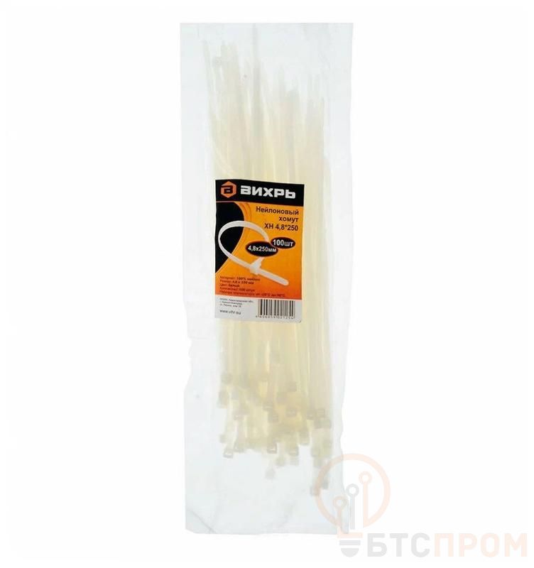 Хомут нейлоновый 4.8х250 Б (уп.100шт) Вихрь 73/9/1/18