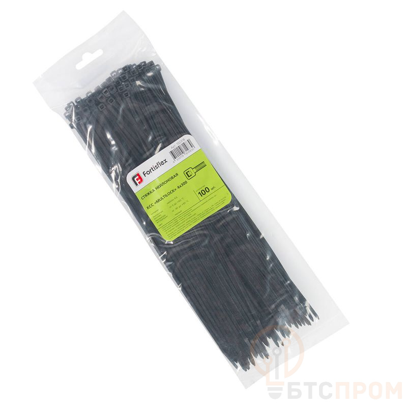 Хомут нейлоновый КСС MULTILOCK 4х300 черн. (уп.100шт) Fortisflex 102318 фото в каталоге от BTSprom.by