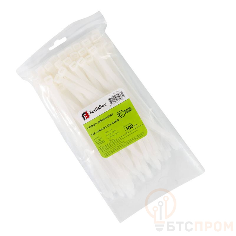 Хомут нейлоновый КСС MULTILOCK 8х200 бел. (уп.100шт) Fortisflex 102311 фото в каталоге от BTSprom.by