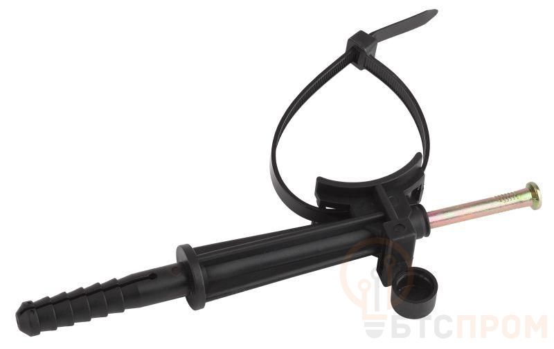 Используется для фиксации провода на опорах и фасадах зданий, а также для стяжки СИП в пучок. Изготовлено из металла, устойчивого к механическим повреждениям и коррозии. В комплекте колпачок для дополнительной защиты гвоздя от коррозии. Конструкцией крепления предусмотрен ремень из пластика для крепления дополнительного СИП.