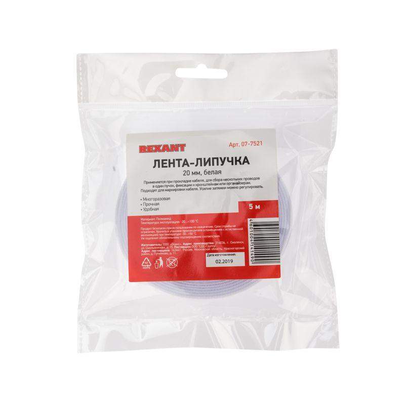 Лента-липучка 5 м х 20 мм используется как средство крепежа для проводов при выполнении ремонтных и монтажных работ. Применяется при прокладке кабелей, для их сбора в один пучок, а также для подвязки к кронштейнам или органайзерам. Служит оптимальным решением для организации компьютерных и телефонных проводов у рабочего стола. Лента представляет собой белую нейлоновую полосу с крючками с одной стороны и петлями с другой. Такая конструкция стяжки предполагает многократное использование. Петли и крючки расположены по всей длине ленты, благодаря чему ее можно использовать в любом направлении. Застегнутая в кольцо лента обеспечивает надежную фиксацию предметов любого размера и разнообразных форм. Обладает высокой прочностью, термостойкостью, эластичностью, также липучка устойчива ко многим химически агрессивным веществам.