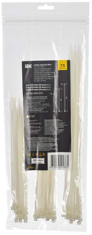 Набор хомутов 3.6х200; 3.6х250; 3.6х300 бел. (уп.75шт) IEK UNH35-N03-075