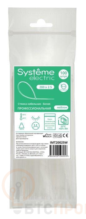 Стяжка кабельная IMT20025W — это надежное и универсальное решение для крепления и маркировки проводов. Изделие стандартного размера 200x2.5 мм изготовлено из прочного нейлона 6.6, что обеспечивает высокую устойчивость к воздействию ультрафиолета, перепадам температур и механическим нагрузкам. Ширина 2.5 мм идеально подходит для пучков среднего диаметра.