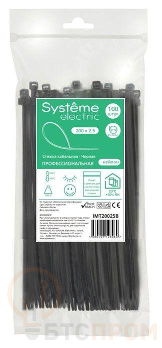 Кабельная стяжка Systeme Electric серии MultiSet в черном цвете предназначена для соединения кабелей и поводов в жгуты и их крепления к элементам строительных конструкций и кабельных лотков. - Широко применяются для организации кабельных трасс в щитовом оборудовании. - Температура эксплуатации: -40…+85°С - поставляется упаковками по 100 штук в пакете с ЗИП-замком и имеет длину 200 мм и ширину 2,5 мм. - Устойчивы к УФ-излучению и подходят для использования на открытых площадках.