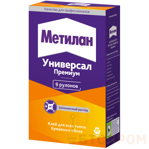 Обойный клей для наклеивания всех видов обоев на бумажной основе. *Экономичный расход. *Идеальное скольжение полотен. *Защита от плесени. *Остатки клея на обоях легко удаляются слегка влажной тканью. Универсальный обойный клей, на основе модифицированного крахмала, предназначен для наклеивания всех видов бумажных обоев: гладких, структурных, гофрированных, дуплекс, тяжелых, а также виниловых и других специальных обоев. Высококачественный, быстрорастворимый, обеспечивает легкое нанесение, высокую прочность приклеивания, отличную противогрибковую защиту. Время приготовления 3 мин.