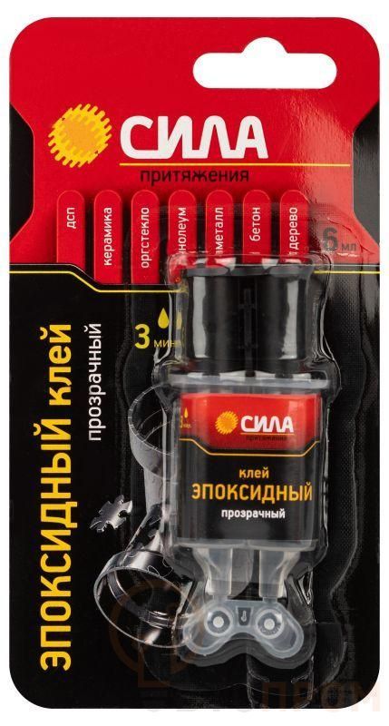 Клей эпоксидный СИЛА шприц двухкомпонентный прозрачный 6 мл. Предназначен для соединения различных сочетаний металлов, дерева, ДСП, бетона, керамики, линолеума, тканей, оргстекла и других материалов. Может применяться для заливки мелких трещин, сколов и других объемных повреждений, так как обладает хорошей текучестью и сверхбыстрым затвердеванием. Эпоксидный клей двухкомпонентный прозрачный на основе полиэпоксидной смолы и отвердителя, намертво скрепляет элементы между собой. Клей универсальный предназначен для различного домашнего ремонта. Двухкомпонентный клей заполняет пустоты, трещины и зазоры. Отсутствует необходимость смешивать компоненты эпоксидного клея в какой-либо ёмкости. Клей двухкомпонентный эпоксидный идеален для склеивания: керамики, фарфора, металла и стекла. Подходит для дерева, камня, бетона и пластика. Эпоксидка восстанавливает форму и объем изделия. Клей эпоксидный двухкомпонентый не применяется для склеивания изделий, контактирующих с пищей. Сдвоенный клей шприц обеспечивает точность пропорции 1:1 компонентов клея. Клей для дерева или же клей для металла с температурой эксплуатации от -30 до +150С. Перед применением выдержать клей для керамики при комнатной температуре. Если эпоксидный двухкомпонентный клей не выдавливается из шприца, его следует слегка подогреть, положив его в горячую воду или на батарею. Клей для пластмассы с временем жизнеспособности смеси 2–3 минуты после смешивания. Эпоксидная смола и отвердитель для эпоксидной смолы позволяет пользоваться склеенным предметом через 20–30 минут. Клеи полностью затвердевает через 24 часа. Используя Клей для камня или же клей для бетона, необходимо обязательно очистить склеиваемую поверхность. Эпоксидная смола с отвердителем хранится при температуре от -20 до +30С. Эпоксидный клей для пластика со сроком хранения 36 месяцев. Клей для керамики и фарфора делает незаметным поврежденное место после шлифовки и покраски.