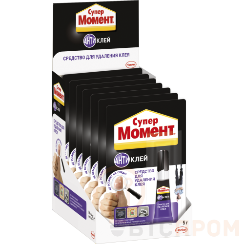 Супер Момент Антиклей — средство для удаления пятен и излишков застывшего секундного клея (супер клея) и ряда других клеев. В форме густого геля — не растекается. Средство для удаления клея, обладает удобной гелевой консистенцией — легко наносить даже на вертикальные поверхности. *Не использовать на окрашенных и лакированных поверхностях. *Продукт не пригоден для некоторых пластиков, например ABS. *В случае возникновения сомнений проведите тестирование на совместимость в незаметной зоне. <ul> <li>Легко и быстро очистит большинство видов клея</li> <li>Гелевая консистенция</li> <li>Не растекается</li> <li>Удобен для применения на вертикальных поверхностях</li> </ul>