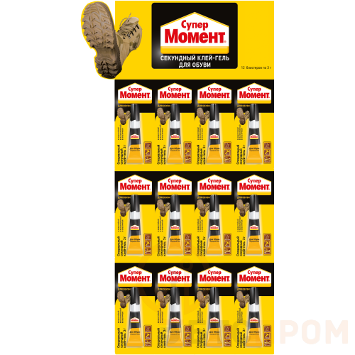 Супер Момент Для Обуви отлично подходит для быстрой и надежной починки обуви из кожи, кожезаменителя, резины, ткани и др. материалов. Эластиченый, прозрачный, водостойкий, склеивает мгновенно. Клей специально разработан для ремонта обуви. Мгновенно склеивает и заполняет мельчайшие трещины, образуя незаметный клеевой шов. <ul> <li>Водостойкий</li> <li>Термостойкий (от -40С до +70С)</li> <li>Супер быстрый</li> <li>Прозрачный</li> <li>Эластичный</li> <li>В форме геля</li> </ul>