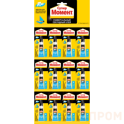 Супер Момент Гель отлично склеивает широкий спектр материалов. Это быстрый, надежный и стойкий гелеобразный секундный клей, который не подведет! Секундный клей гелевой консистенции идеален для применения на вертикальных поверхностях — не растекается, не капает. <ul> <li>Идеален для вертикальных поверхностей</li> <li>Не растекается, не капает</li> <li>Возможность коррекции при склеивании</li> </ul>