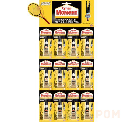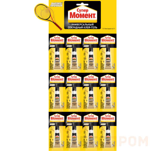 Супер Момент Высокопрочный является универсальным секундным клеем в форме геля, отлично подходит для соединения различных материалов. Водостойкий и термостойкий, обладает повышенной прочнойстю клеевого шва. Быстрый, прозрачный, не растекается. Универсальный надежный секундный клей, отличающийся повышенной прочностью и надежностью шва. <ul> <li>Сверхпрочный</li> <li>Без запаха</li> <li>Мгновенное склеивание</li> <li>Образует сверхпрочное соединение, устойчивое к вибрационным и ударным нагрузкам</li> </ul>