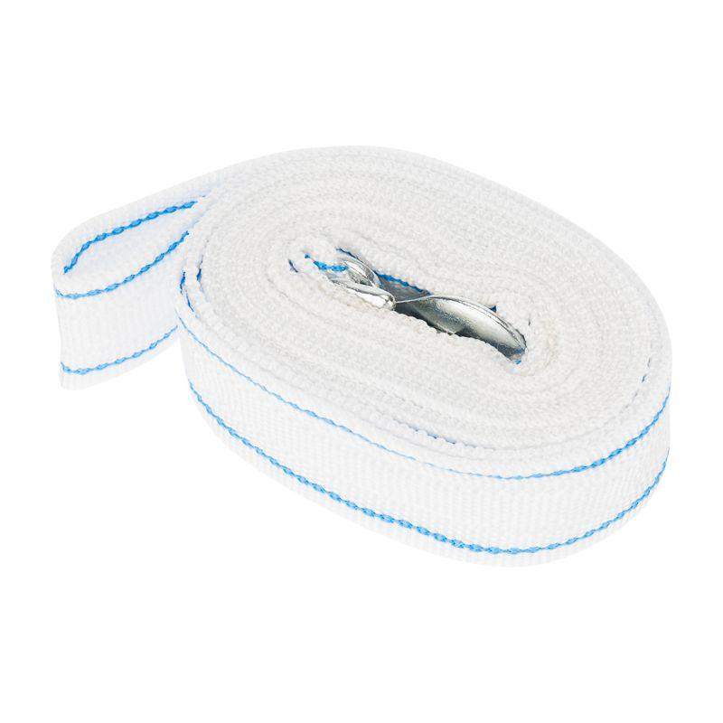 Буксировочный трос предназначен для надежного соединения двух автомобилей с целью безопасной транспортировки или буксировки одного автомобиля с помощью другого. Является незаменимым элементом в случае поломки автомобиля. Трос изготовлен из полипропилена, отличающегося стойкостью к низким температурам и резкому изменению влажности. На концах изделия расположены металлические крюки с пружинным фиксатором. Трос обладает грузоподъемностью до 10 тонн и при продолжительной эксплуатации не меняет свои линейные размеры. Длина изделия – 5 м, что обеспечивает достаточное расстояние между автомобилями, позволяет водителям сохранять безопасную дистанцию и маневрировать во время движения. Для удобства хранения трос поставляется в индивидуальной упаковке.