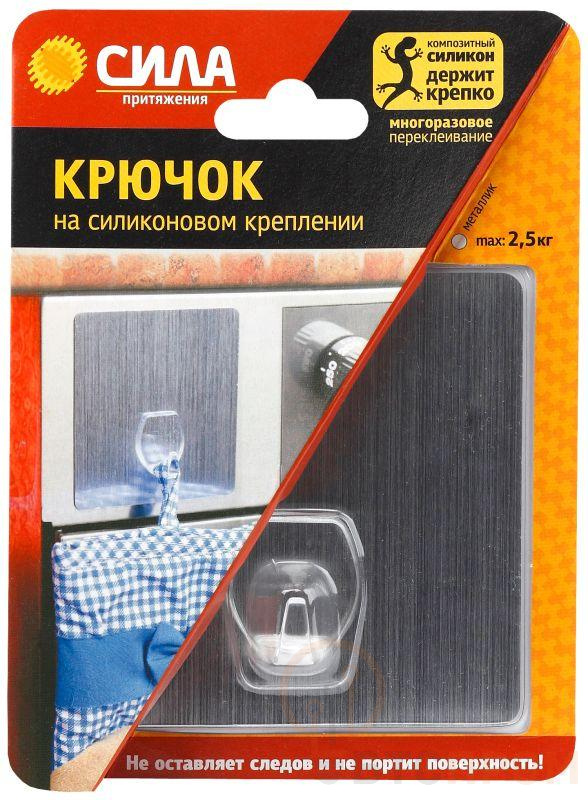 Настенный крючок на силиконовом креплении СИЛА SH1010-S1S-24. Квадратный самоклеящийся крючок-держатель актуального серебристого цвета. Размеры - 10х10 см. Удачный способ избежать сверления стен или мебели. Инновационные крючки на композитной силиконовой основе надежно удерживают предметы весом до 2,5 кг. Доступно многоразовое переклеивание с сохранением функций. Не портят поверхность и не оставляют следов. Идеальны для кафеля, пластика, стекла, ламинированных поверхностей. Помогут организовать даже небольшое по площади пространство - быстро и без проблем. С успехом применяются во влажных помещениях - ванные комнаты, туалеты, кухни. Хорошее решение для подсобок, кладовых, гардеробных, прихожих. Подходят не только для полотенец, проводов, гирлянд, но и для более тяжелых предметов - небольшие фены, кружки, зонты. Часто используются для одежды. Аккуратные настенные крючки серебристого цвета отлично подойдут в современный интерьер. Благодаря таким помощникам в доме всегда будет порядок и красота!
