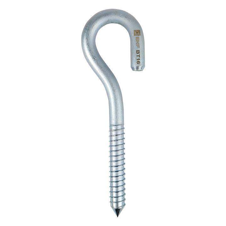 Крюк резьбовой типа bt-16 предназначен для крепления анкерных зажимов на деревянных фасадах зданий и деревянных опорах. Крюк устойчив к ультрафиолетовому и солнечному излучению, высоким и низким температурам, коррозии и агрессивным атмосферным воздействиям.