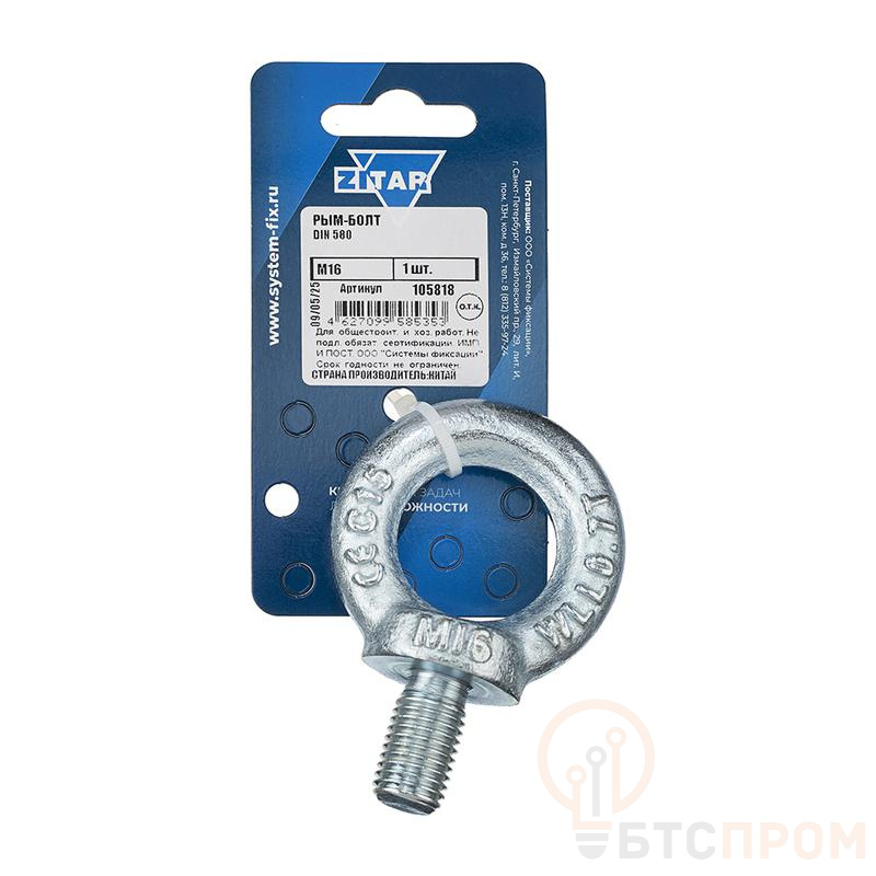 Рым-болт М16 DIN 580 от бренда Tech-Krep/Zitar — это надежное и прочное такелажное приспособление, предназначенное для подъема, перемещения и фиксации различных грузов. Изделие изготовлено из высокопрочной углеродистой стали, что гарантирует его долговечность и устойчивость к значительным нагрузкам.