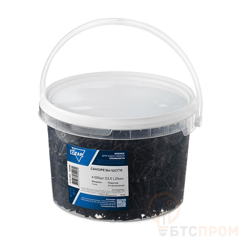 Саморез ШСГМ 3.5х25 от бренда Tech-Krep/Zitar предназначен для надежного и быстрого монтажа в строительстве и отделке. Изделие изготовлено из углеродистой стали и имеет защитное покрытие из цинка, что обеспечивает высокую коррозионную стойкость и долговечность соединения.