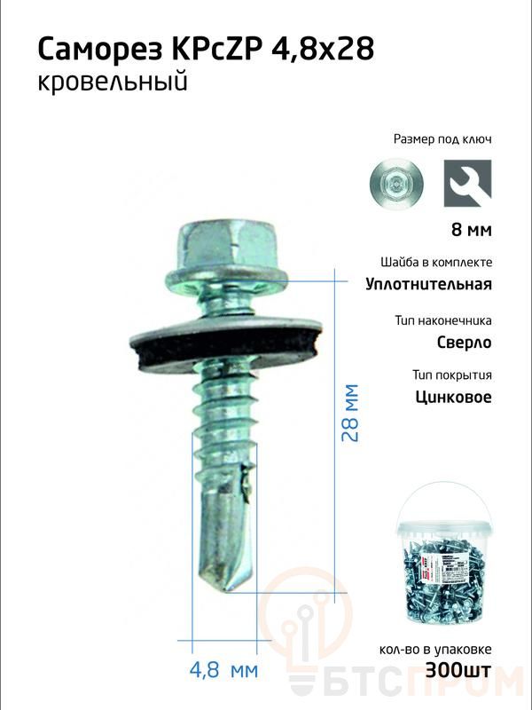 Саморез усиленный КР ZP сверло 4.8х28 (ведро) (уп.300шт) Tech-Krep PRO/Zitar 101000 фото в каталоге от BTSprom.by