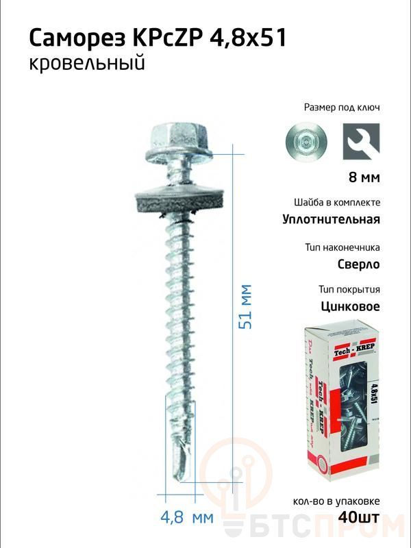 Саморез усиленный КР ZP сверло 4.8х51 (коробка с окном) (уп.40шт) Tech-Krep PRO/Zitar 112027 фото в каталоге от BTSprom.by