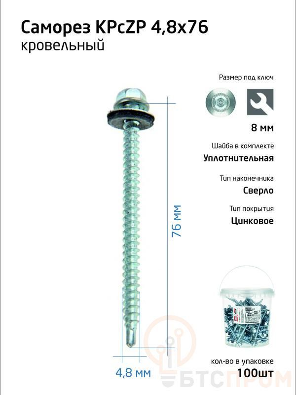 Саморез усиленный КР ZP сверло 4.8х76 (ведро) (уп.100шт) Tech-Krep PRO/Zitar 104749 фото в каталоге от BTSprom.by