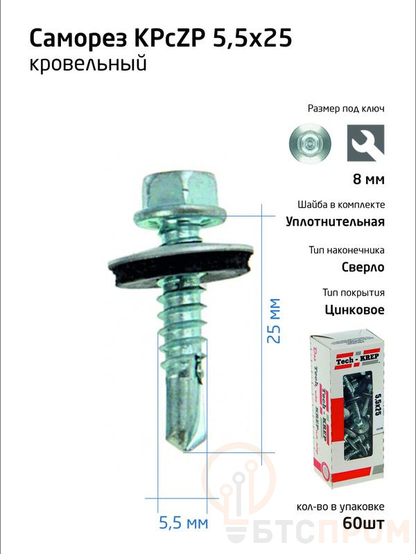 Саморез усиленный КР ZP сверло 5.5х25 (коробка с окном) (уп.60шт) Tech-Krep PRO/Zitar 124627 фото в каталоге от BTSprom.by