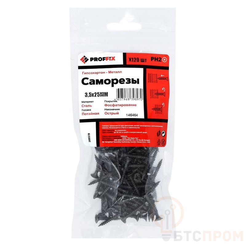 Саморез усиленный гипсокартон-металл PROFFIX имеет потайную головку с крестообразным шлицем PH2, резьбу с мелким шагом и острый наконечник. Изготовлен из высокопрочной углеродистой стали с оксидным покрытием черного цвета. Применяется для потайного крепления гипсокартонных листов (ГКЛ), древесноволокнистых плит (ДВП), фанеры, OSB и других листовых материалов к металлическим основаниям. Допускается использовать для соединения тонкостенных металлических профилей толщиной до 1 мм между собой.