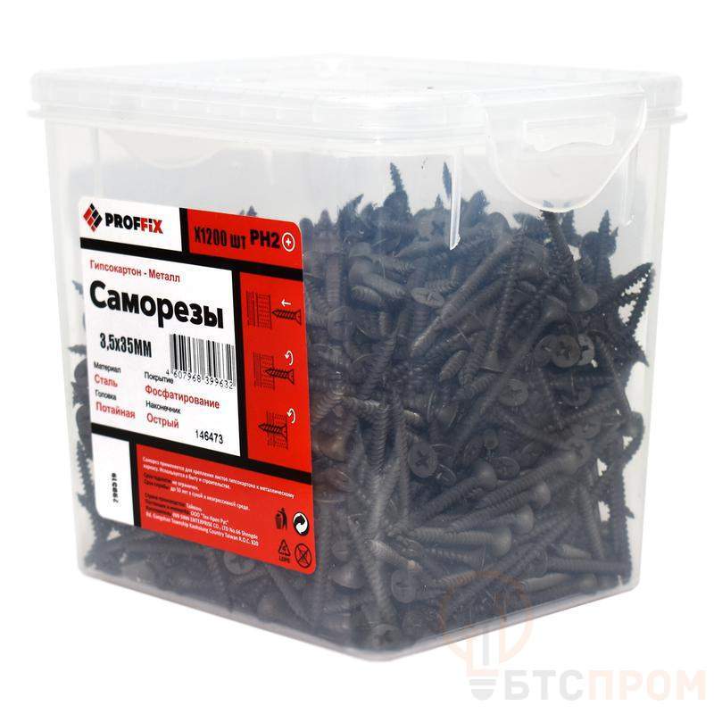 Саморез усиленный гипсокартон-металл PROFFIX имеет потайную головку с крестообразным шлицем PH2, резьбу с мелким шагом и острый наконечник. Изготовлен из высокопрочной углеродистой стали с оксидным покрытием черного цвета. Применяется для потайного крепления гипсокартонных листов (ГКЛ), древесноволокнистых плит (ДВП), фанеры, OSB и других листовых материалов к металлическим основаниям. Допускается использовать для соединения тонкостенных металлических профилей толщиной до 1 мм между собой.