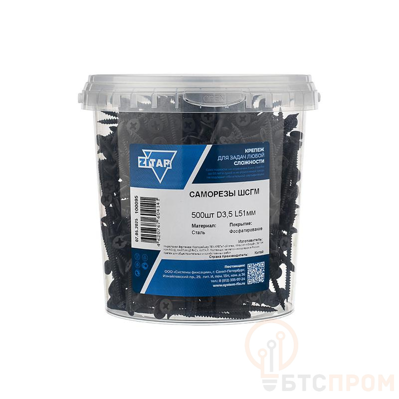Саморез ШСГМ имеет специальную форму головки и позволяет скрыть её в закрепляемом материале. Изготовлен из углеродистой стали с фосфатным или оксидным покрытием.Применяется для потайного крепление гипсокартонных листов (ГКЛ), фанеры, OSB плит и других листовых материалов к металлическим направляющим.
