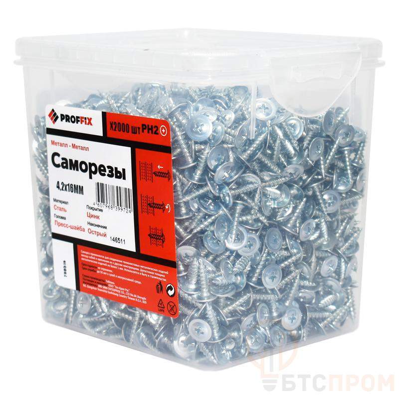 Саморез усиленный PROFFIX имеет полусферическую головку с прессшайбой и крестообразным шлицем PH2, полную резьбу с мелким шагом и острый наконечник. Изготовлен из высокопрочной углеродистой стали с антикоррозионным цинковым покрытием. Применяется для крепления металлических элементов, толщина которых не превышает 1 мм, между собой и к несущей поверхности без предварительного сверления. Допускается применять с пластиковыми дюбелями для установки в кирпичные и бетонные конструкции.