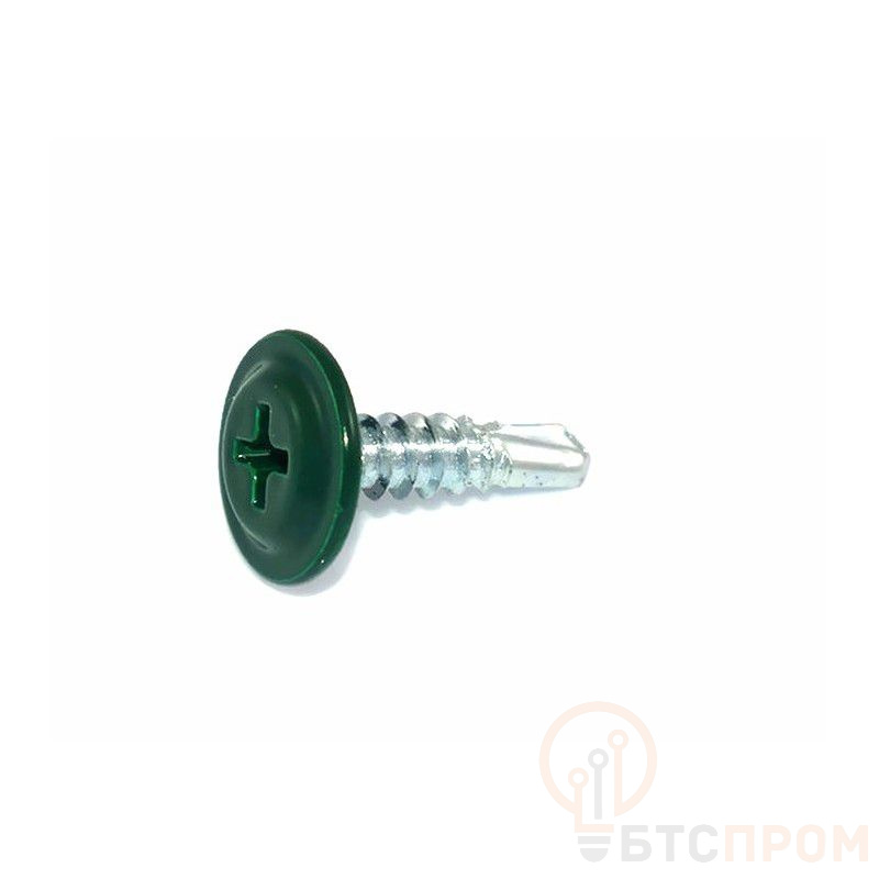 Изделие изготовлено из углеродистой стали и имеет цинковое покрытие, дополнительно окрашенное в зеленый цвет по каталогу RAL 6005. Это обеспечивает отличную коррозионную стойкость и эстетичный внешний вид. Широкая прессшайба создает большое прижимное усилие и надежно фиксирует материал, предотвращая его деформацию.