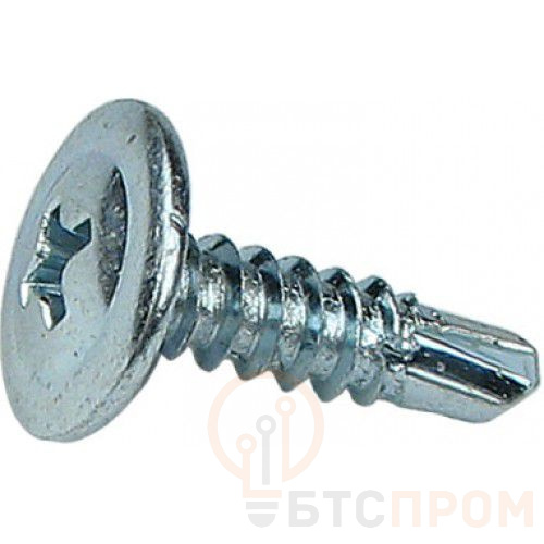 Основные характеристики: диаметр — 4.2 мм, длина — 38 мм, оснащен широкой прессшайбой для плотного прижима и защиты материала от деформации. Изготовлен из высококачественной углеродистой стали с антикоррозионным покрытием.