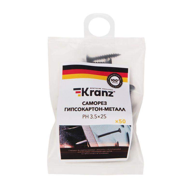 Саморез 3,5х25 мм со шлицем типа PH предназначен для крепления гипсокартонных листов к металлическому профилю. Саморезы изготовлены из стали и обработаны методом фосфатирования, что делает их устойчивыми к коррозии и механическим повреждениям. Потайная головка полностью погружается в материал, оставляя поверхность заготовки ровной и гладкой. Резьба с частым шагом обеспечивает надежное крепление самореза в тонколистовом металле. Не рекомендуется использование совместно с пластиковыми дюбелями. Поставляются в упаковке в количестве 50 штук - такого количества саморезов хватит для выполнения минимума работ, где не нужно большое количество крепежных элементов.