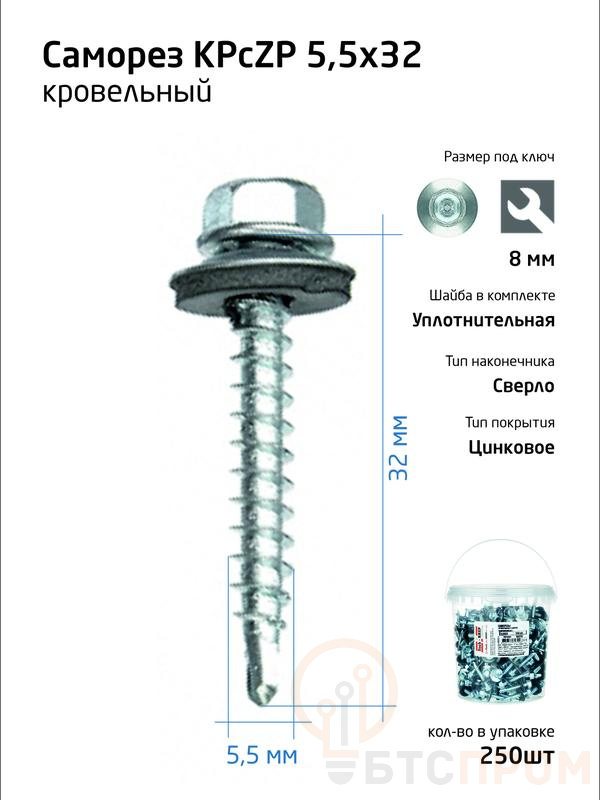 Саморез усиленный КР ZP сверло 5.5х32 (уп.250шт) Tech-Krep PRO/Zitar REP 104752 фото в каталоге от BTSprom.by