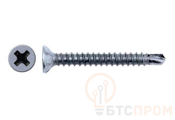 Ключевая особенность — наконечник в виде сверла, который позволяет вкручивать саморез без предварительного засверливания, даже в металлические элементы фурнитуры толщиной до 2 мм. Это значительно ускоряет монтажные работы. Потайная головка утапливается в материале, создавая аккуратную и гладкую поверхность.