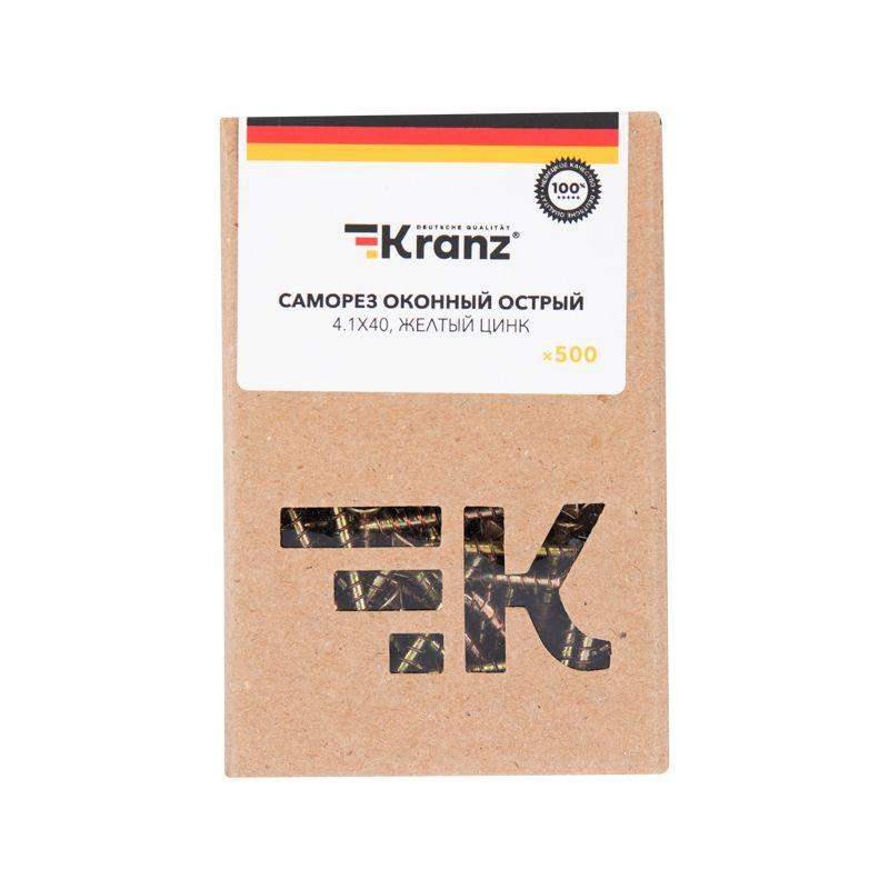 Саморез оконный острый 4.1х40 желт. цинк (уп.500шт) Kranz KR-01-3721-010 фото в каталоге от BTSprom.by
