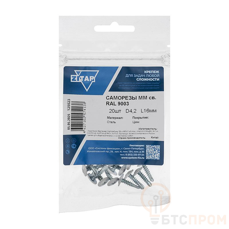 Саморез ШСГМ 4.2х16 с буром (сверлом) и полуцилиндрической головкой предназначен для надежного и быстрого монтажа металлических конструкций. Изделие изготовлено из высококачественной углеродистой стали и имеет устойчивое белое цинково-хроматное покрытие KP RAL 9003, обеспечивающее отличную коррозионную стойкость и эстетичный внешний вид.