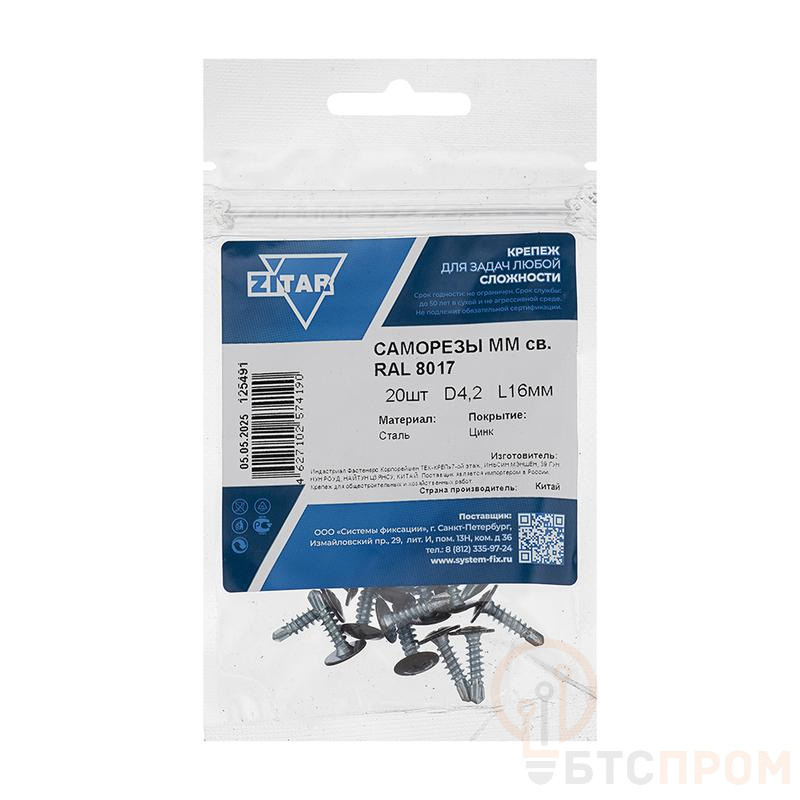 Крепеж имеет увеличенную пресс-шайбу, которая обеспечивает плотное прилегание и равномерное распределение давления, предотвращая деформацию материала. Для защиты от коррозии и долговечности саморез покрыт порошковой краской темно-коричневого цвета RAL 8017, что делает его устойчивым к атмосферным воздействиям.