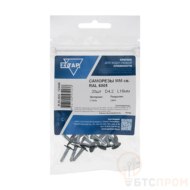 Изделие имеет темно-зеленое покрытие RAL 6005, которое обеспечивает эффективную защиту от коррозии и гармонично сочетается с цветом профнастила. Уменьшенная потайная головка позволяет плотно прижимать скрепляемые материалы.