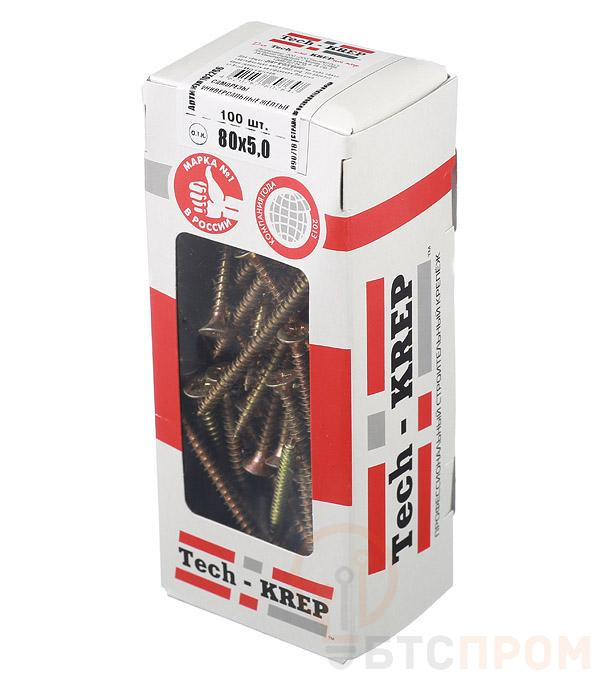 Саморез универсальный 80х5.0мм оцинк. (уп.100шт) Tech-Krep/Zitar 102203