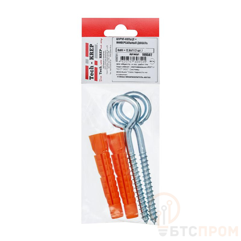 В состав комплекта входят: универсальные дюбели ZUM и шурупы-кольцо. Универсальный дюбель ZUM применяется для крепления различных деталей и изделий к следующим основаниям: бетон, полнотелый и пустотелый кирпич, газобетон, керамзитобетон, листовые материалы, камень. В полнотелых материалах дюбель работает за счет распора, а в пустотелых и листовых материалах скручивается в плотный узел и фиксируется в виде «якоря» с внутренней стороны. Устанавливается в предварительно просверленное отверстие.
