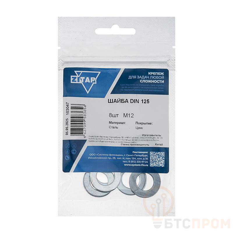 Шайба плоская М12 DIN 125 цинк. (пакет) (уп.8шт) Tech-Krep/Zitar 103047 фото в каталоге от BTSprom.by