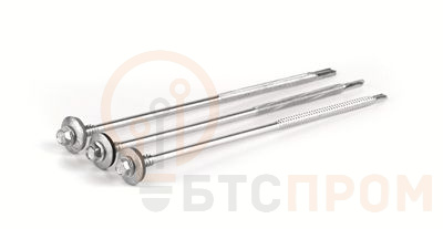 Самосверлящий самонарезающийся винт с шайбой используется для крепления к сэндвич-панелям несущих конструкций и молниеотводных полос. Длина винта - 185 мм.
